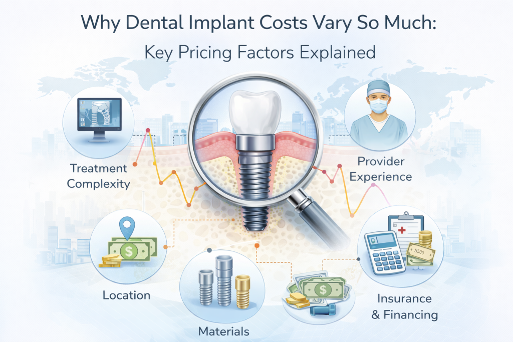 This educational guide explains why dental implant costs vary so much by examining the key pricing factors that influence treatment expenses. Rather than focusing on exact prices, this article aims to help patients understand the elements that shape overall cost.